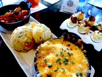 The rolls didn’t need butter, it was already moist and delicious. The potato salad was supreme, the macaroni and cheese was covered in extra cheese, the mashed potatoes, sweet potato souffle, corn casserole – all perfectly done - and Travis said the Rainbow Trout was one of the best he’s ever tasted!